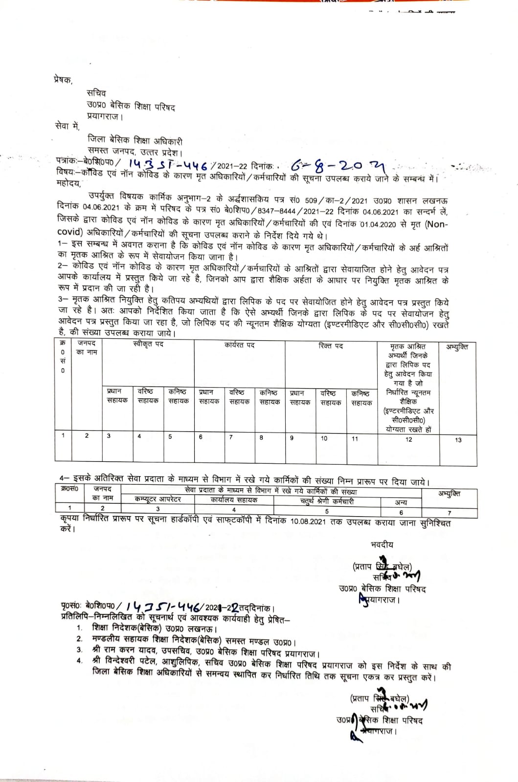 Secondary Education कोविड एवं नॉन कोविड के कारण मृत अधिकारियों / कर्मचारियों के आश्रितों के सेवायोजन हेतु रिक्त पदों की सूचना उपलब्ध कराने के सम्बन्ध में admin10/08/202110/08/2021