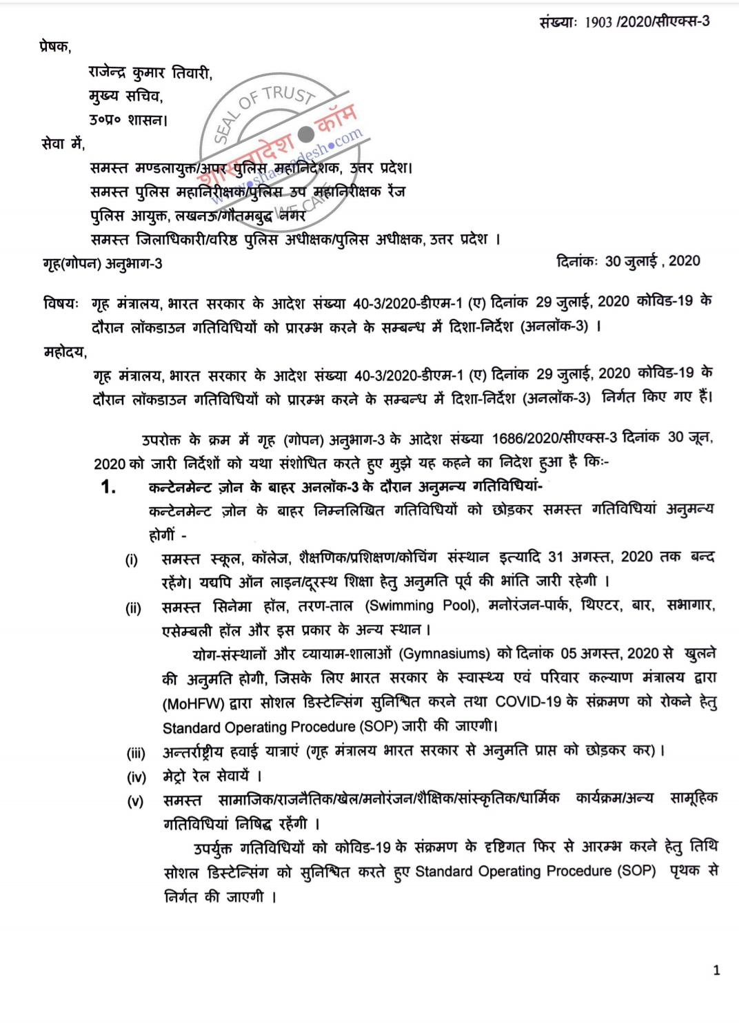 प्रदेश में संचालित समस्त शिक्षा बोर्डों के कक्षा 9 से कक्षा 12 के विद्यालयों को पठन-पाठन हेतु एक पाली में खोले जाने के संबंध में