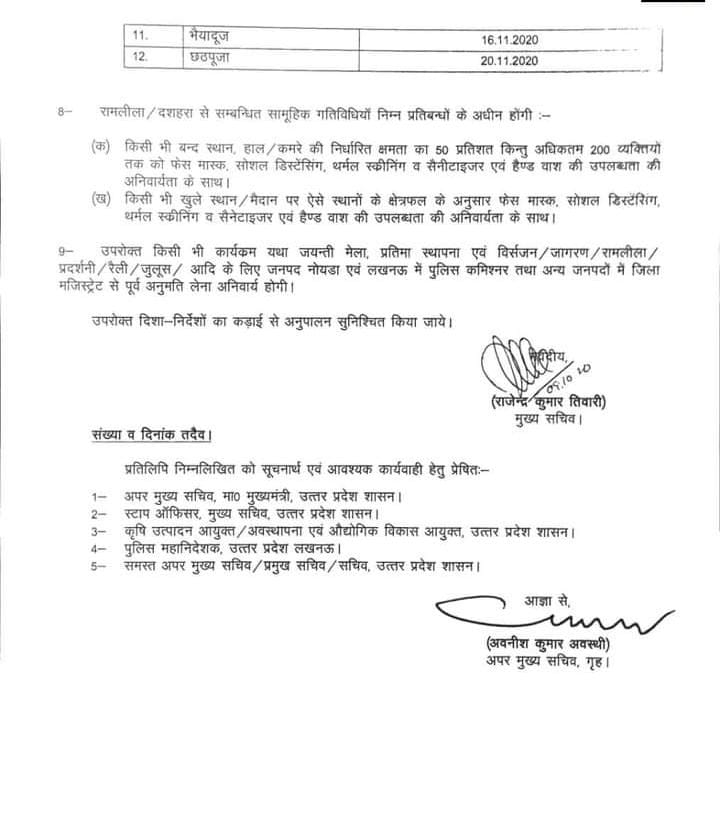 Secondary Education कोरोना महामारी के दौरान यूपी में आगामी त्योहारों के दौरान पूजा/मेला/जुलूस आदि कार्यक्रमों के आयोजन की गाइडलाइन जारी admin26/10/202026/10/2020
